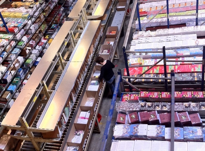 Zone de picking (préparation des commandes de livres) du distributeur Interforum Editis.